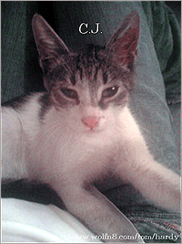 I have a Kat in my hotel room, I wish I could send you the photos I took on my cellphone, I spent 4 hrs manually zapping fleas on the bugger and fed him threw him in the bath and we're like 95% flea free, now went to the super market but they didn't have no stuff but raid so I sprayed the room with this pollutant spray killing anything that falls off him gonna get him wormed tomorrow at the pet store. then we got to find him a home. he shines right now. i call him CJ after the guy in GTA San Andreas. he's on my mobile phone, plenty of photos, but this new one ain't set up to send or retrieve photomessaging so I will have to update you with photos when I get back to London. On the way back from the internet cafe yesterday, there's this kitten in the road, and I'm like. hey kat whssup? then I had to double take. that's a small cat as cats go. it's prolly like a couple months old max. so I'm like hey little fella, and I look about but no one is looking for this thing. so I stopped and turned round and said hey kat where's your family, and he's like I don't know.